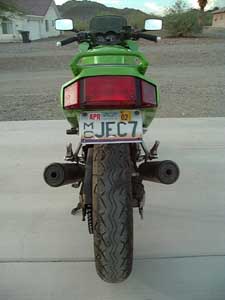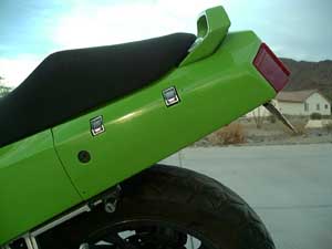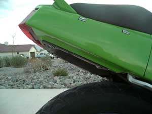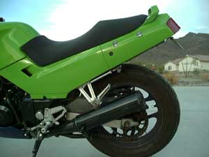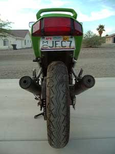The following is a simple and very inexpensive - yet stylish - way to modify your Ninja 250's enormous, black rear fender. The result is a "cleaner" and more streamlined look to your sportbike! To the best of my knowledge, this modification only applies to the EX250-F. If this procedure also applies to any of the other models of the Ninja 250, please let me know! As you do this fender elimination, you will have to make a series of important decisions. I'll begin by quickly outlining those issues...