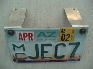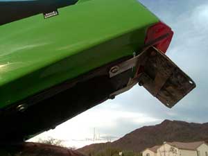 Once fabricated, it should look like this. Note that the bracket in these pictures is bent. You will do this later in the process. For now, simply bolt the new bracket to your license plate with any available hardware.
