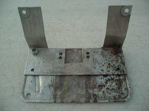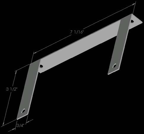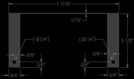 As I mentioned above, the license plate can be mounted by making a custom bracket. Mine was made out of a scrap piece of 1/16" thick aluminum angle that was laying around the shop. You can make yours out of a flat piece and simply create the necessary bends with a hammer or vice. Dimensions for the bracket are as follows. If you decided to keep your license plate light, you can make the appropriate tabs longer to allow room to mount the light above the license plate. Note that if you don't have a 4"x7" license plate, the hole pattern for your license plate may be different than what is shown here in the third picture...