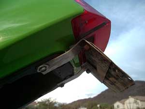 License Plate: You have two primary options with the license plate. These instructions involve the construction of a new license plate bracket from aluminum angle stock. If you don't have the desire to go that far, you can plan ahead by cutting your fender in such a way that you leave "tabs" for the licnese plate to bolt onto.