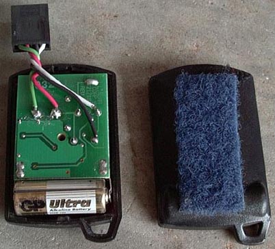 The following page outlines how to neatly install a garage door remote in your motorcycle and operate it via a convenient, bar-mounted pushbutton. There are a few ways to go about doing this installation. Your first task is to decide how many garage doors you want to be able to open. The instructions below will outline how to wire your bike for a 3-button remote. Of course, if you know what you're doing, you can modify these instructions to suit the number of buttons on your garage door remote if it isn't three. If you need help, just contact me.