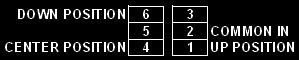 Align the switch such that the "NEW P/N M-2024" label is at the bottom. If you're looking at the terminals on the back of the switch with this label on the bottom, the pin numbers will be located as shown above. In addition to the wire connections, you will also need to take a small piece of scrap wire and jumper pins 3 and 5 together on this switch. If you use a different type of switch, this will not apply.